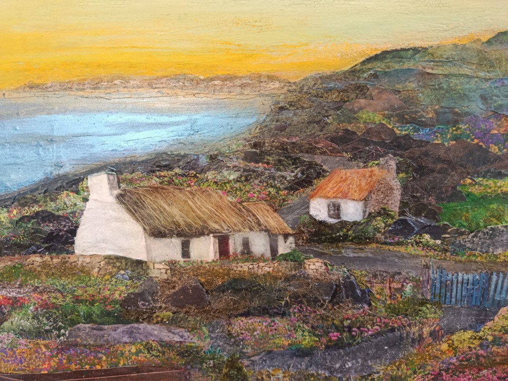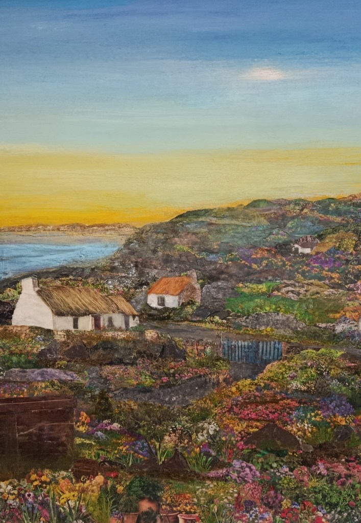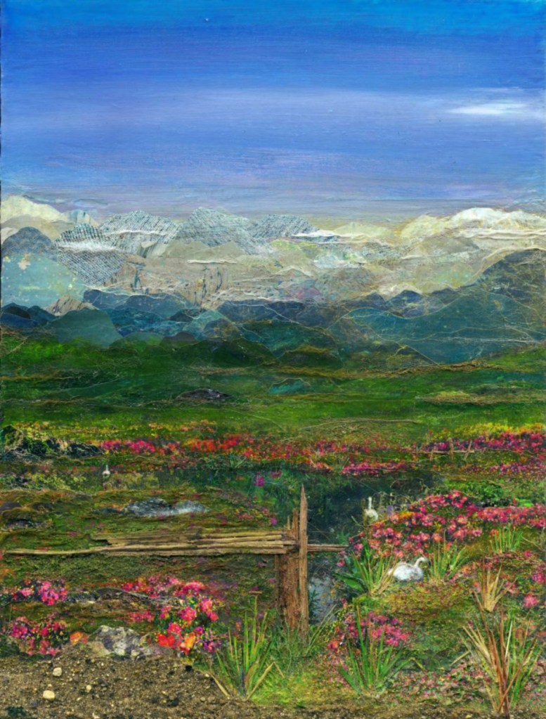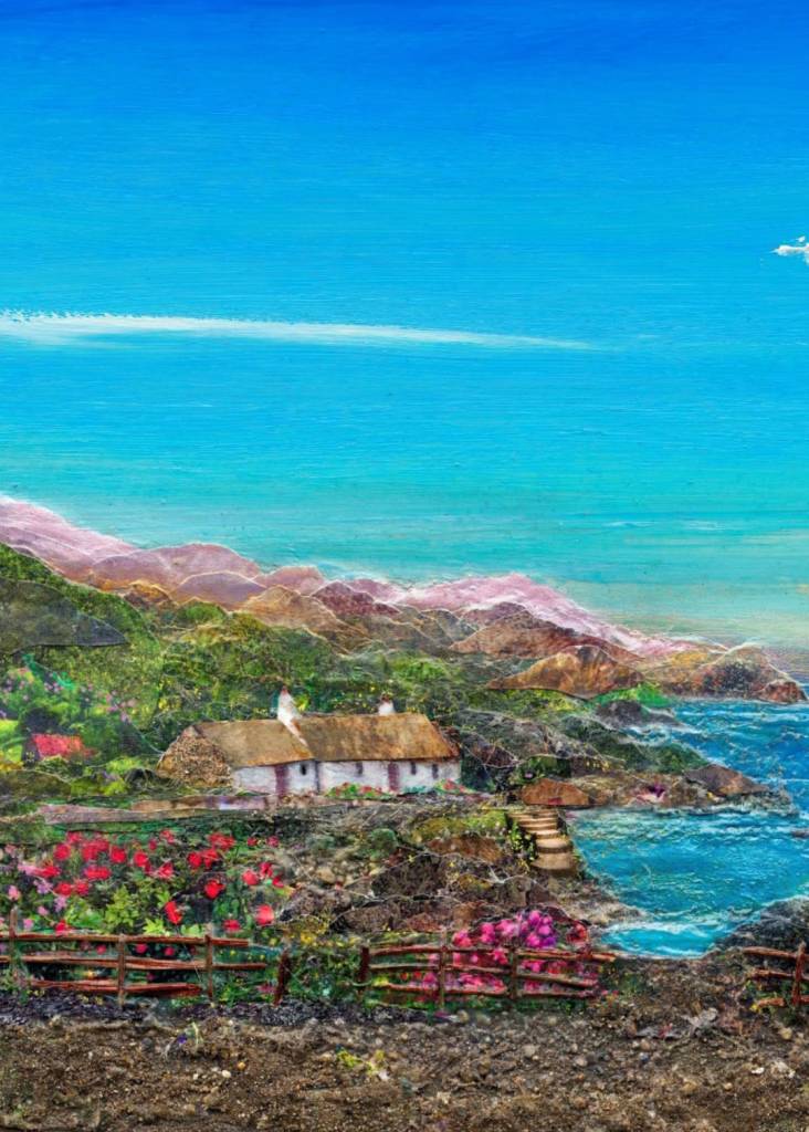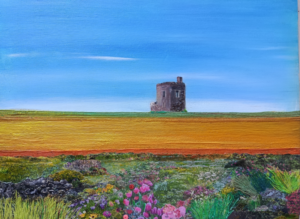 I like to use mixed media and explore different textures and forms. I am particularly interested in landscape art and our relationship with nature and beauty, with abundance and colour.