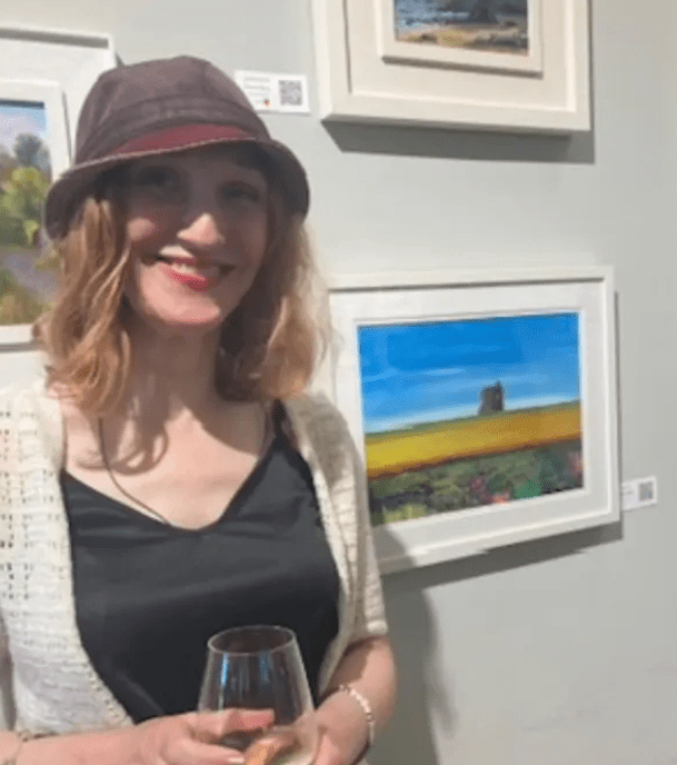 It was such a lovely evening at An Chéad Tine, Kilkenny for the opening of the gallery’s second annual exhibition. I am delighted to be sharing two pieces of artwork in this beautiful exhibition, which runs until 4th November. Thank you so much Louise Cherry for selecting my work. I am thrilled to be sharing space with such incredible artists. Thank Mary Doyle Burke, Marco di Sante and Niamh Curry for all your hard work in putting together this wonderful exhibition. I was in such great company last night, made new friends and got to enjoy beautiful art. This piece, titled ‘The Coast Road’ is one of two. The Second, ‘The Lake at Eventide’ is a bit smaller!