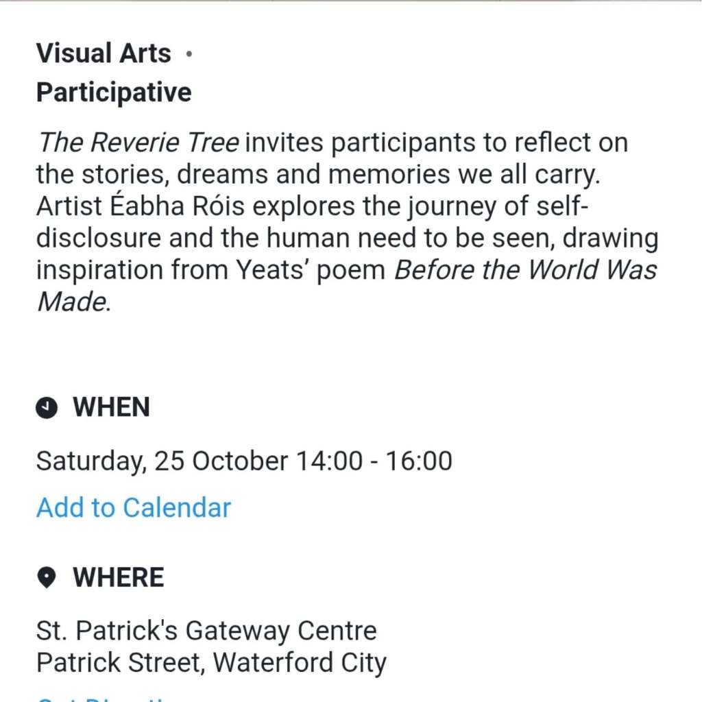 I am so excited to be facilitating The Reverie Tree during October’s @imagineartsfestival_ in Waterford city.